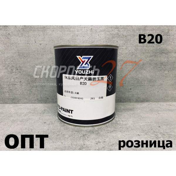 K-B20-1K* БАЗОВАЯ КРАСКА NISSAN ЧЕРНАЯ, ДВУХСЛОЙНЫЙ МЕТАЛЛИК, КОД B20 (Китай)