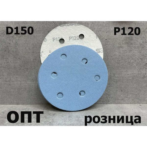 D150-P120* ДИСК ШЛИФОВАЛЬНЫЙ НА ЛИПУЧКЕ Р120/D-150мм, 10шт. (Китай)